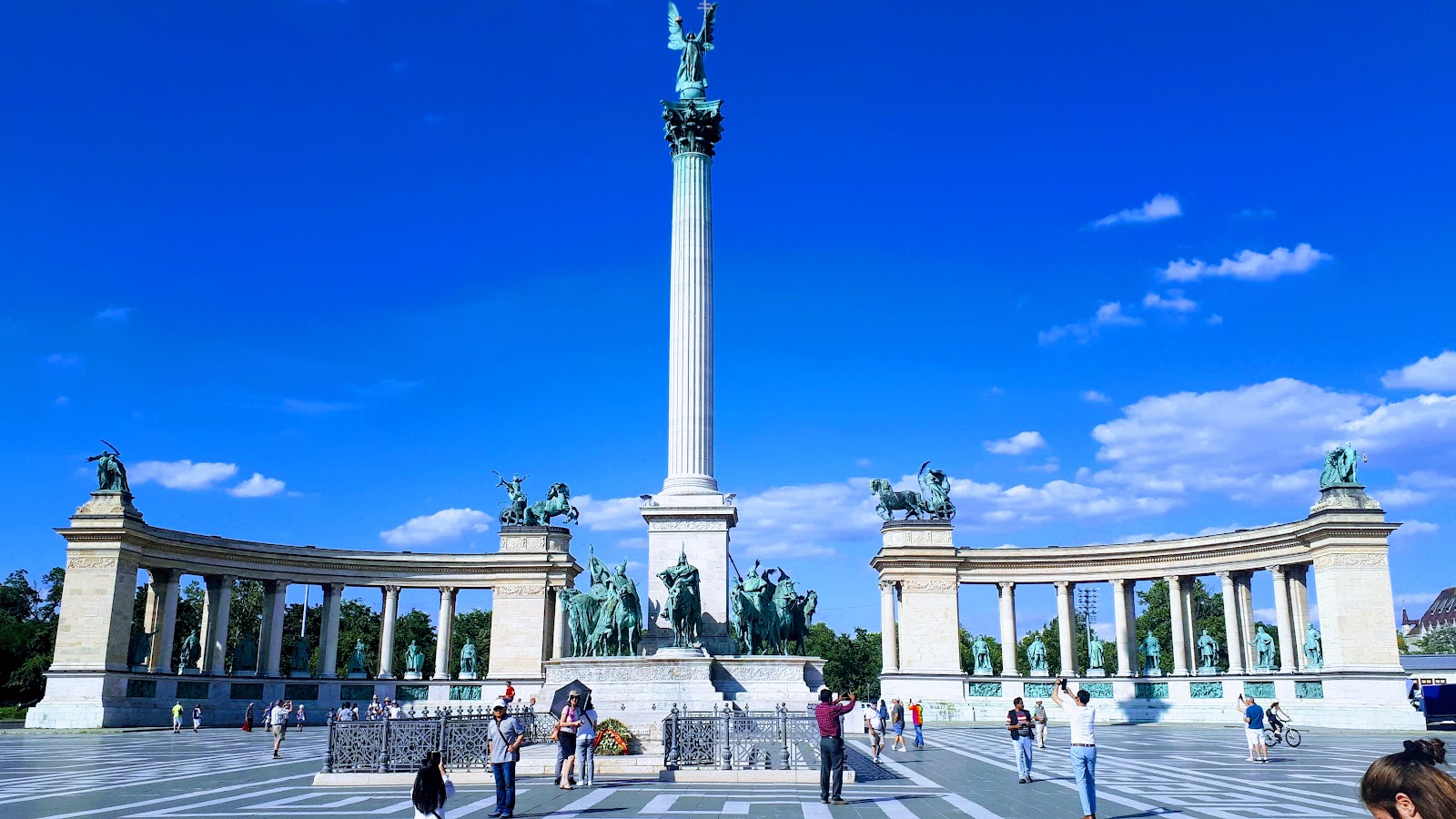 Una vez acabada la visita, nos cogimos el metro y volvimos a la entrada del parque Városliget, para recorrer la Plaza de los Héroes. En el centro encontramos el Monumento del Milenio, de 36m de altura y flanqueado por dos columnatas que representan los 7 jefes de la tribus que se establecieron en Hungría.